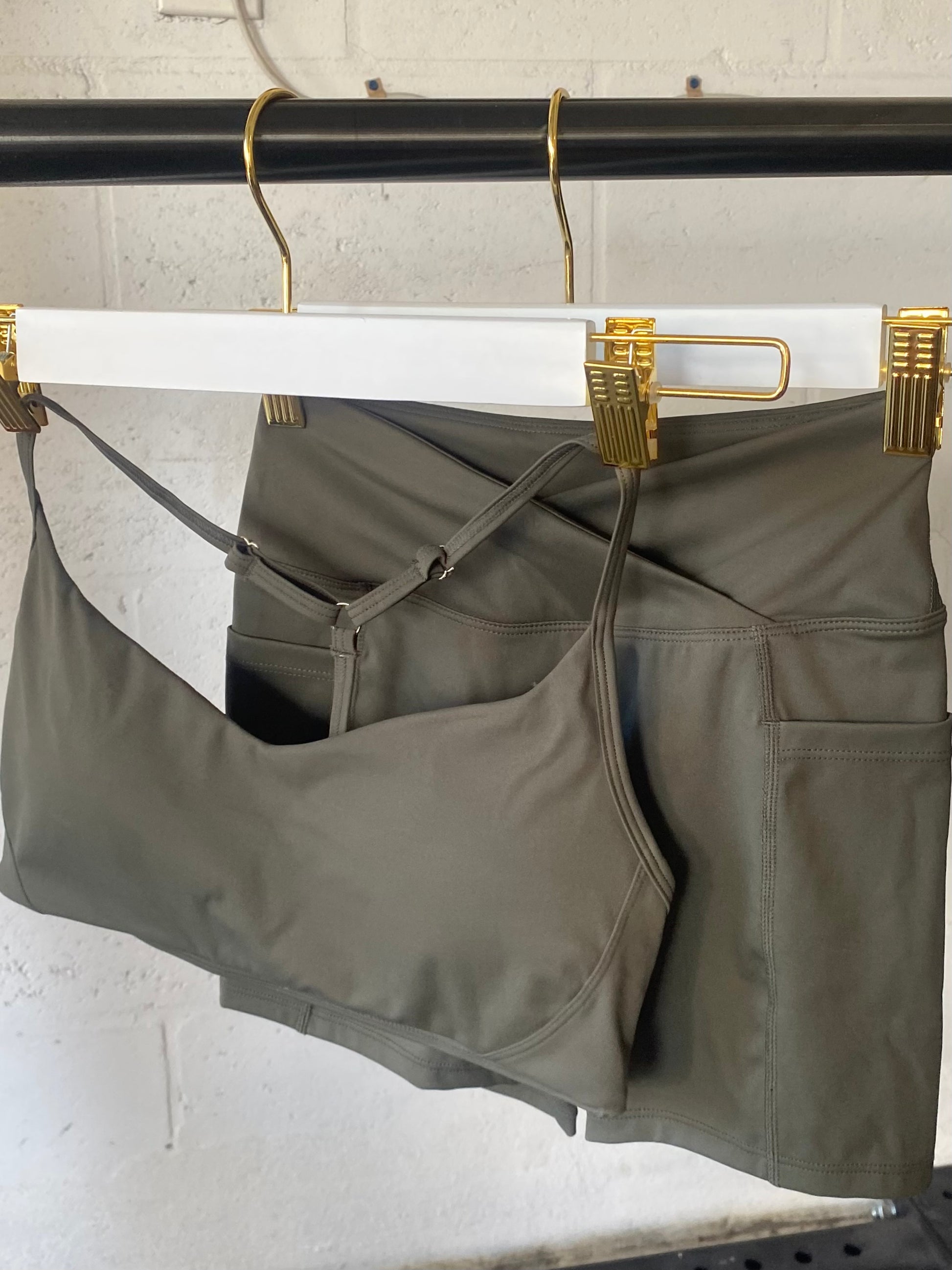 For our petite girls! Our new adjustable triangle sports bra in most beautiful ash green color. Light to medium support with adjustable straps. Pair with the matching shorts to complete your set!