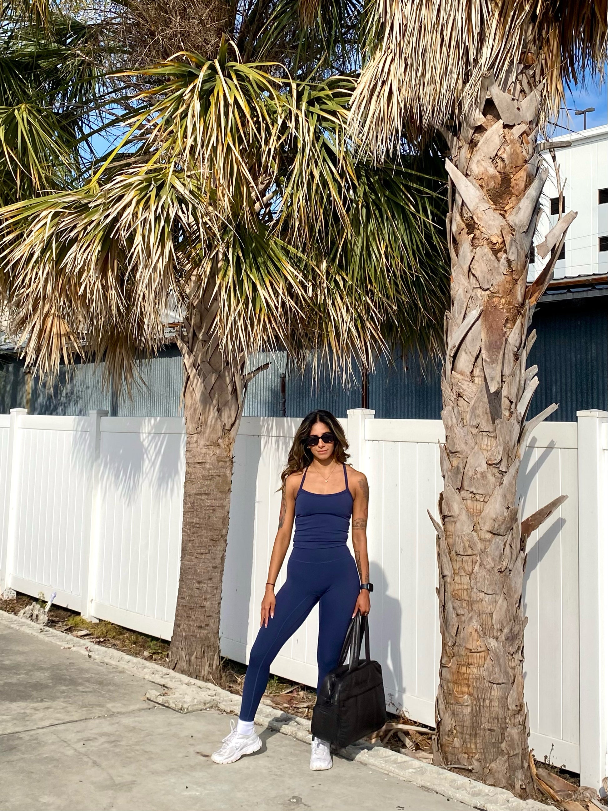 Compressive fabric with the cutest strap details AND removable push-up padding for the girls. We suggest sizing up if you prefer less compression!